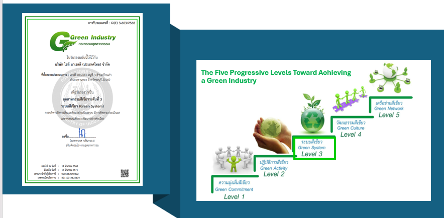 据了解,“绿色工业三级(绿色体系)”认证是泰国工业区管理局对企业环境管理能力的权威认可,代表企业已构建起一套符合绿色工业原则、高效规范的环境管理体系。该体系以“计划 - 实施 - 检查 - 改进”(PDCA)的持续改进流程为核心,强调在企业运营全过程中融入环境责任理念,助力实现长期可持续发展目标。对于 HMTH 而言,这一认证不仅是一份荣誉,更是对其坚持负责任运营、践行环保承诺的有力佐证。